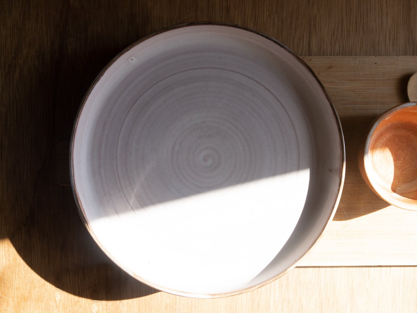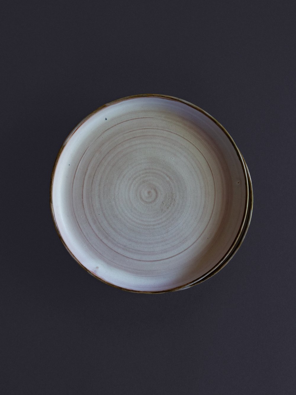 A lovely set of 2 large stoneware plates, made of black clay and glazed with white on the inside