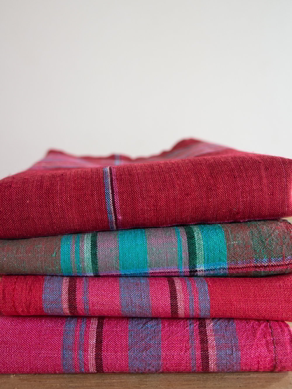 A set of 4 large assorted napkins made from Indian khadi cotton.