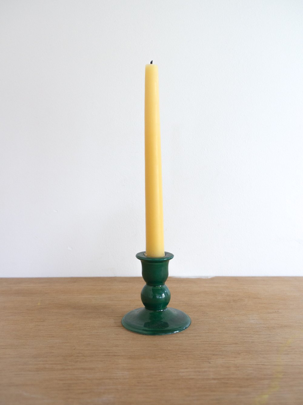 Ceramic candlestick holder in a beautiful green gloss glaze
