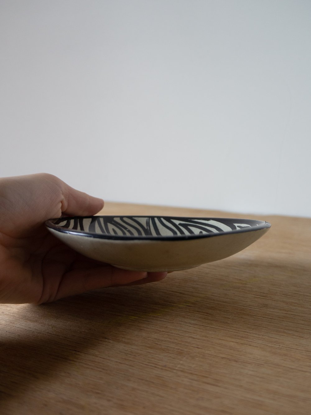 a small handpainted black & white ceramic dish